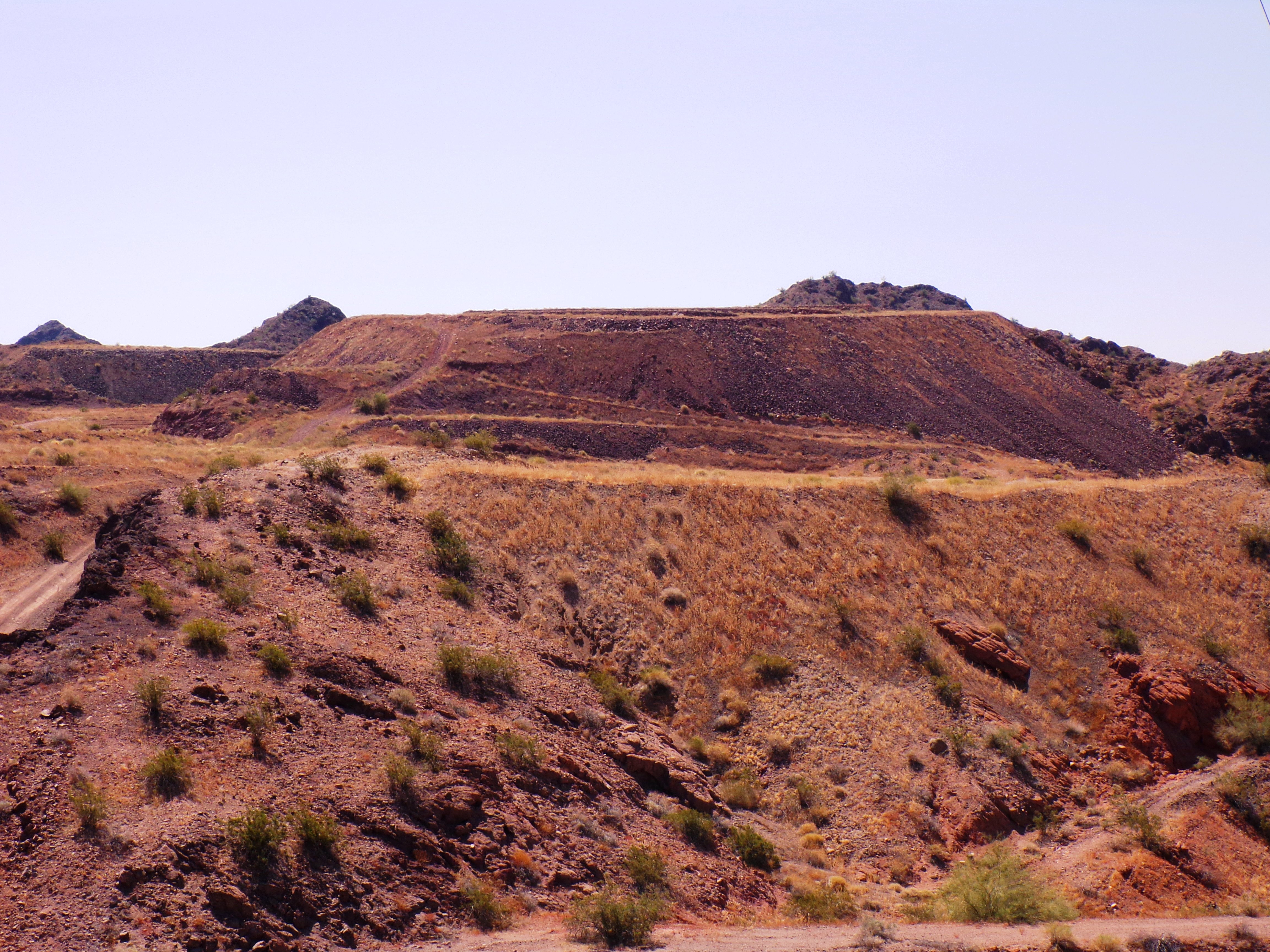 View at the top of the hill is spectacular and unobstructed. Looking west, blue green waters of the Colorado are visible backed by the rugged Buckskin Mountains in California. The Whitsett Pumping Station is visible including Parker Dam.