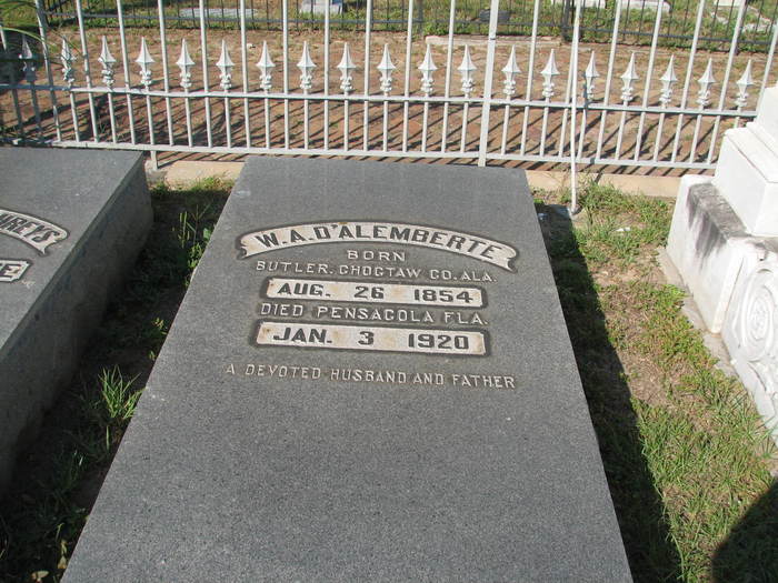 Willoughby remained in Pensacola with his mother, brother, and sister. He studied medicine eventually opening his own drug store. Willoughby D’Alemberte lived in Pensacola for 50 plus years. He died January 3, 1920, at the age of 65. The successful druggist is buried in St. Michael’s Cemetery.