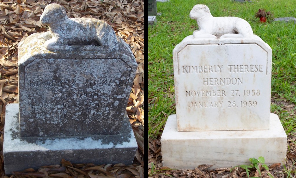 Kimberly Therese Herndon’s gravestone was nearly undistinguishable from algae and grime. Thanks to the efforts of Doug Buster and his Cemetery Preservation Group, the small white monument was cleaned and looks as it did 60 years ago.