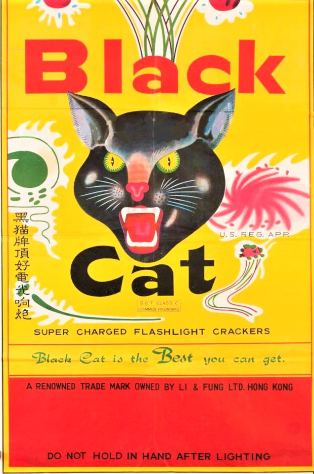 Black Cat firecrackers manufactured prior to 1968 are of a different breed than those of today. The earlier version contained substantial more flash powder. Because of such, the bang was louder and the chance of injury to little fingers greater. Black Cats are still available although they’re not the same powerful cat as they once were.