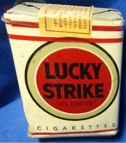 Lucky Strike brand was popular going way back. Many of dad’s friends smoked them. Lucky Strike had a nifty little motto that was easy to remember: L.S.M.F.T. The abbreviation stands for: “Lucky Strike Means Fine Tobacco.” My friend Jeff has a whole different twist on the letters. He says L.S.M.F.T means: “Lucky Strike’s Make Funeral’s Thrive.”