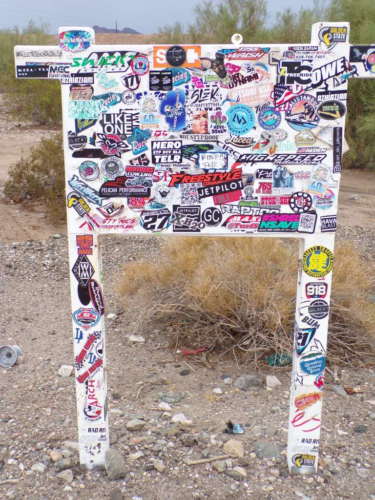 The Havasticker billboard was originally a wood, handmade sign designating Body Beach, but over time it became a metal bulletin board for PWC manufacturer’s and race teams. There appear to be sticker names on this sign from all over the world, although some might be from Southern California and just look foreign to me; Azhiaziam being one.