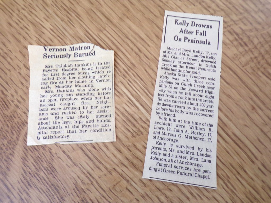 My mother kept a lot of clippings going way back to the 1940s. Some consisted of birth announcements, death announcements, and unusual stuff like, “so and so visited so and so over the weekend.” Small town newspapers back in the day would print just about anything.