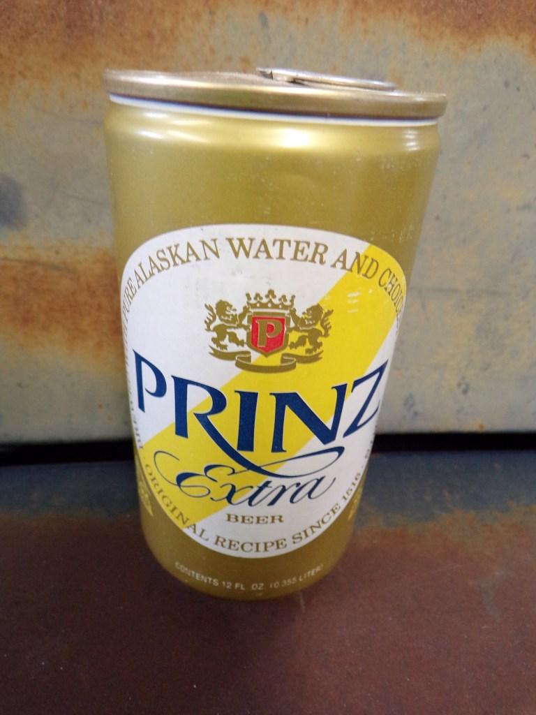 One of these days, I’ll drill a hole in my prized Prinz Bräu can and drain the contents. It seems a waste to dump it down the sink. I’m not for drinking the stuff, yet pouring a small amount on my head shouldn’t hurt as the damage has already been done.