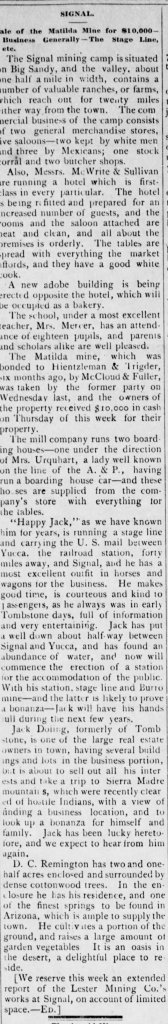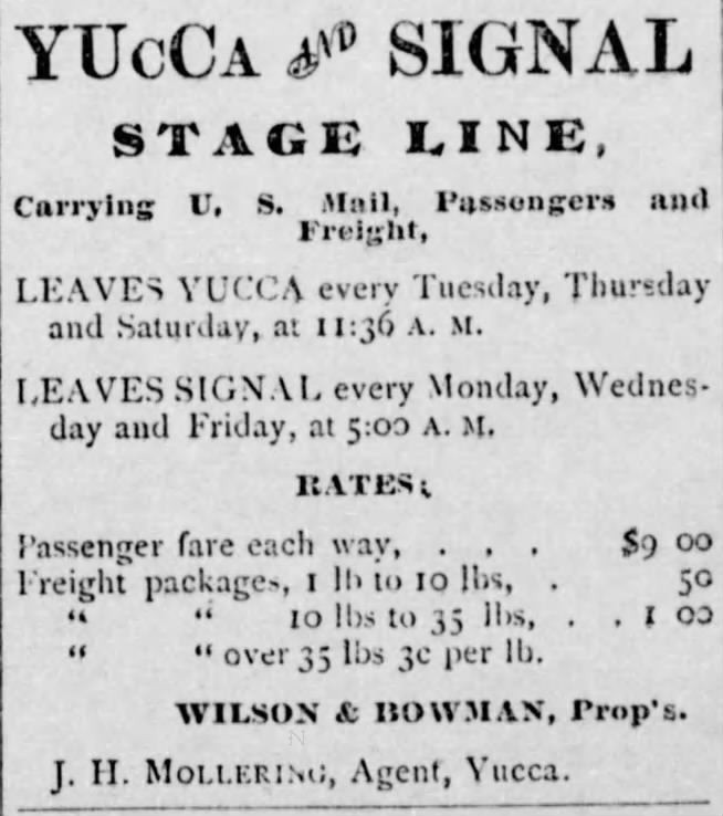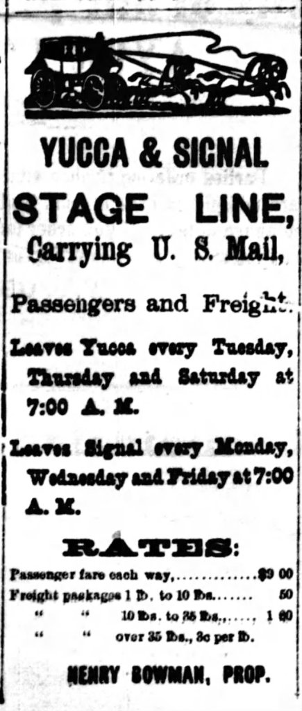 Henry owned The Yucca & Signal Stage Line in Yucca and provided service to and from the mining town of Signal. This business also hauled the mail. Henry was also a successful ranch owner and miner, along with keeping burros either to be sold or leased to other prospectors. Signal is now a ghost town.