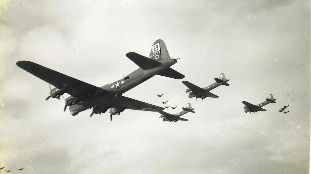 Group of B-24 Liberators on a bombing mission
