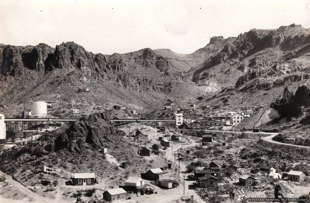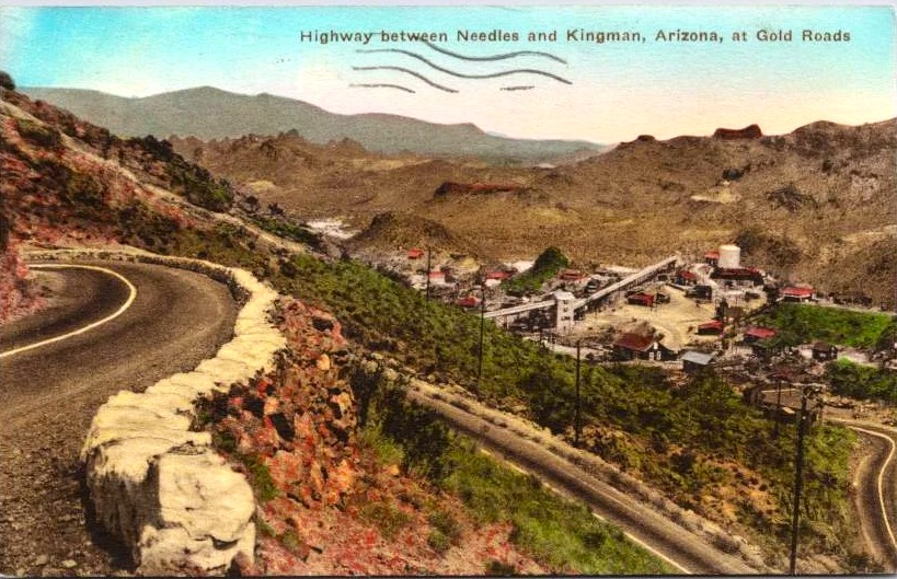 A couple of miles west of Oatman, Arizona, on old Route 66, lies the former goldmining town of Goldroad. There’s nothing left of the original stone buildings other than a commercial gold mining operation still located where they once sat.