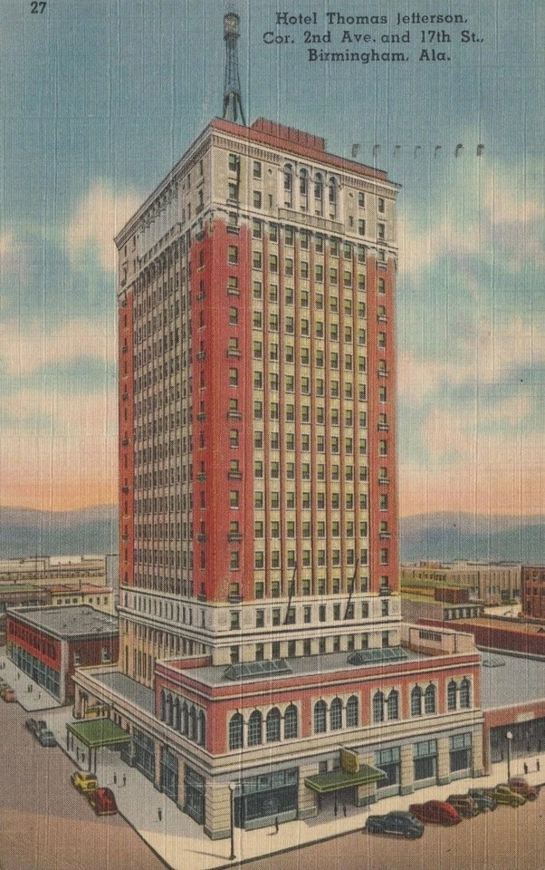 Construction on the Thomas Jefferson Hotel began in 1925, at a time when Birmingham—often dubbed the “Magic City” for its rapid industrial growth—was eager to showcase its prosperity. Designed by the architectural firm Holabird & Root, along with local architect William Lee Stoddart, the hotel was built in the Beaux-Arts style, featuring ornate details, a limestone façade, and elaborate interior spaces. When it opened its doors in 1929, the Thomas Jefferson Hotel soared 19 stories high, making it one of the tallest buildings in Birmingham at that time.