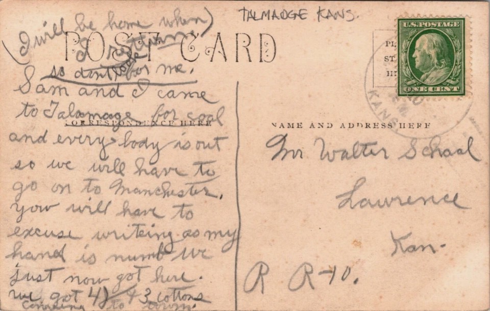 A cute picture postcard sent from Americus, Kansas, to Dunlap, Kansas, in 1911, spoke to me in several ways. The picture on the front shows a Pekingese dog standing calmly beside a kitten.