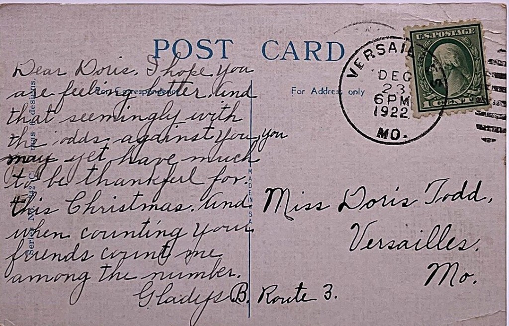 The card was sent from “Mom & Pop” to Mr. & Mrs. Ernest Kenaga in Elkhart, Indiana. I decided to research this card in its entirety.